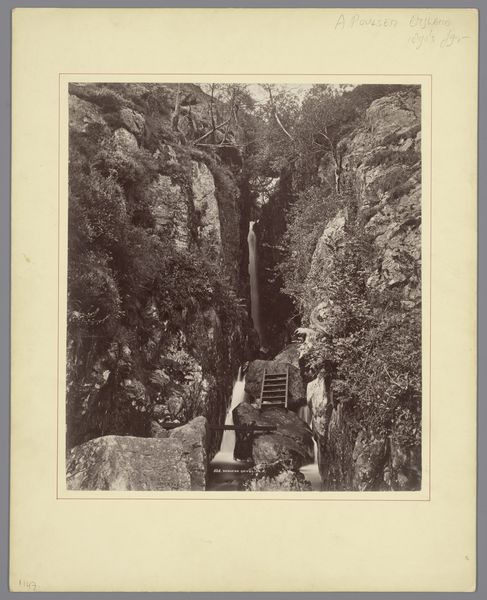 Editor: Here we have Johan Nöhring's photograph, "Nieuwe waterval in Bergpark Wilhelmshöhe," a gelatin silver print from the late 19th century. There's a real sense of Romanticism here, with nature presented as this powerful, sublime force. How do you interpret this work? Curator: This photograph allows us to examine how constructed landscapes serve to reinforce certain power structures. Consider the artificiality of the waterfall itself within the Bergpark Wilhelmshöhe, and how it was engineered as a display of wealth and control over nature. It reminds me of similar grand projects undertaken during the same period, meant to inspire awe and demonstrate dominion. Who do you think benefited most from this controlled 'natural' environment? Editor: Presumably, the elite who commissioned it, as a symbol of their status. It seems different than if it were just a natural, untouched waterfall, doesn’t it? Curator: Exactly. The very act of photographing this manicured scene elevates and disseminates these ideologies. It presents an idealized vision, concealing the labor and resources required to construct and maintain this illusion. In what ways do you see this romanticized portrayal masking underlying social inequalities? Editor: The framing almost makes it seem like a purely natural wonder, obscuring the deliberate human intervention and, as you said, the social realities of its creation. I hadn’t really thought about it that way. Curator: Think about whose stories are told and whose are omitted when viewing images like this. This forces us to reckon with art history's complicity in perpetuating certain narratives. I appreciate you sharing your reflections with me today. Editor: This conversation reframed my understanding entirely. Thank you.