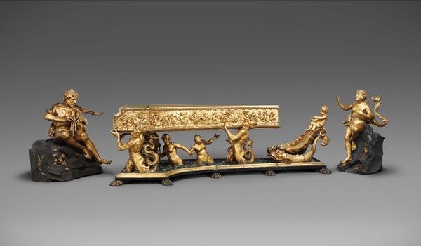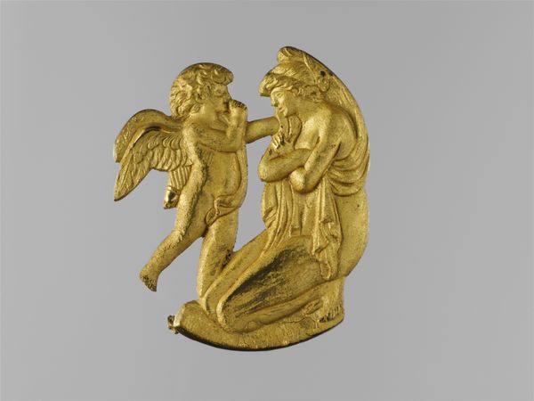 Editor: Here we have François Rémond’s “Allegory of Science,” a bronze relief from sometime between 1780 and 1795. The whole scene is bathed in this warm, golden light, and there's a sense of playfulness with these cherubic figures engaging with scientific symbols. What's your interpretation of this piece, and what strikes you most about its allegorical nature? Curator: You know, it's funny, looking at it now, it reminds me of those Renaissance putti, those little cherubs popping up everywhere. Only here, instead of harps and flowers, they're fiddling with instruments of science, like a celestial globe. It’s as if Rémond is suggesting that scientific exploration is not some dry, intellectual pursuit but a joyful, even childish, activity. The light reflects and warms, doesn't it? Almost as if the material is not static or representational but is light and active, in itself. What do you make of that juxtaposition? Editor: That’s such a great observation! It completely reframes how I was seeing it. The lightness, you are right, contrasts wonderfully. Almost as if to remind the viewer that there is a lightness in education itself, an activity too-often marred in the popular conception of heavy learning. Curator: Exactly! It invites a kind of playful intellectual engagement, doesn't it? As for allegory, it boils down to this idea of representing abstract concepts through tangible symbols. Here science isn’t just science, it's personified, almost deified, as this idyllic scene of childlike exploration and learning. What more can you find, now, with that consideration? Editor: Knowing it's an allegory really deepens my understanding of it, I have to admit. Curator: Wonderful. It just makes you wonder, what 'science' are they allegorizing? How has science been since seen, and what did Remond envision, exactly, about the relationship between exploration and childlike discovery? I'm sure each viewer sees that with fresh eyes. Editor: Definitely! It’s given me so much to consider about the era’s view of knowledge and discovery. Curator: Indeed. Art, and our conversation too perhaps, is always a work in progress, after all!