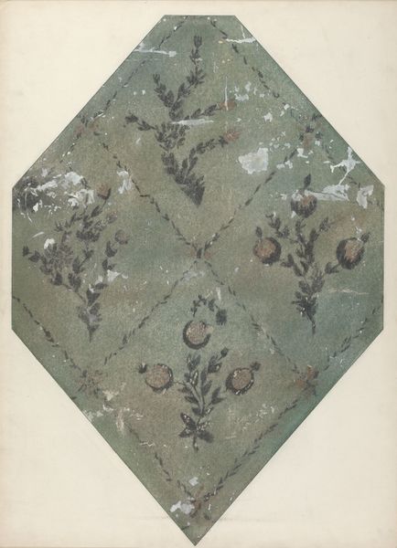 Curator: Immediately, the somber, muted tones of brown make me think of the economic struggles prevalent when it was made. Editor: Today we’re looking at "Materials from Patchwork Bedspread," a watercolor and graphite study on paper created around 1936 by Frances Lichten. Curator: The work is arranged with meticulous precision, each swatch a testament to craftsmanship. How the design highlights a certain visual repetition speaks to the labor that might have been put in place when constructing quilts, especially the use of repurposed textiles in that era. Editor: I notice the way she carefully renders each pattern, acknowledging both its unique properties, and how the sameness speaks to the standardization of quilt design in mainstream folk art circles. Consider the ways that this craft became a marker of feminine identity, an arena for creative self-expression but also subject to cultural expectations. Curator: Yes, but let’s also think about it purely formally. Watercolor gives these swatches a unique feel of being at the precipice of being washed out, reused, repurposed as are quilts by their very definition and materials! The materiality communicates the beauty but also its inherent temporality. Editor: Certainly. And these swatches provide insight into the social status of those who may have used quilts. Was the material hand-dyed? Was the fabric from pre-used textiles? Perhaps this was made from store-bought, mass-produced patterns and textiles for a family able to purchase their fabrics from big retailers? Quilts aren't just made of textiles; they're made of cultural histories. Curator: And the very act of Lichten rendering it in watercolor pulls it out of being functional into the high art world. A simple record of a craft becomes elevated by technique, a material transformation. Editor: Ultimately, Lichten urges us to consider how ordinary materials are inextricably intertwined with the lives, labor, and memories of individuals. Curator: What begins as a record of folk materials is transmuted through medium and execution into something else, an inquiry into labor, materials and our very way of constructing visual experience and meaning.