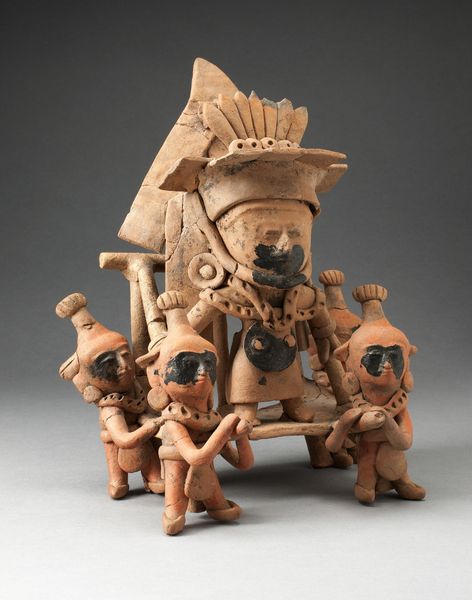 This is a terracotta model of a tree-climbing ritual made by an artist from Nayarit, in modern-day Mexico. It is now housed at the Art Institute of Chicago. The scene presents a community gathering around a stylized tree. There are men climbing and children playing with dogs on the ground. The figures wear cone-shaped hats, possibly indicating their status or role in the ritual. The tree may well have held great cultural and spiritual importance in Nayarit society. The sculpture offers insights into the social and religious practices of the people in the region. Its presence in an institution like the Art Institute allows us to study and appreciate the artistic expressions of cultures outside the Western canon. To understand the ritual and the social structure of the Nayarit people, we can delve into archaeological reports, anthropological studies, and historical accounts of the region. By doing so, we can better understand the cultural context in which this piece was created.