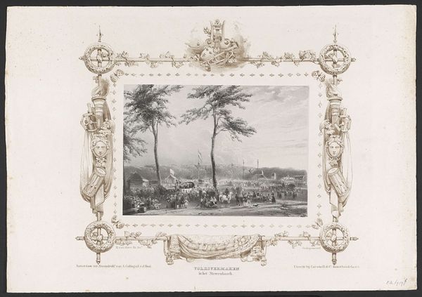 Curator: Domenico Amici created this etching, "Fountain of the Sea Horses at the Villa Borghese." Editor: What a charming scene! There’s an immediate sense of leisure and refinement, isn't there? Curator: Absolutely. Etchings like this, often printed and collected, were crucial in disseminating ideas about landscape and taste, particularly among elites, solidifying the Borghese estate's image as a cultural touchstone. Editor: The sea horse motif itself, half horse, half fish, speaks to transformation, to the fluid boundary between the natural and the mythological worlds… perhaps hinting at the transformative power of art itself. Curator: A fair point. The fountain and park were very deliberately designed to invite a certain kind of social performance, to showcase wealth and sophistication. Editor: It makes me ponder how public art shapes our collective imagination, even centuries later. Curator: Precisely! The image endures.