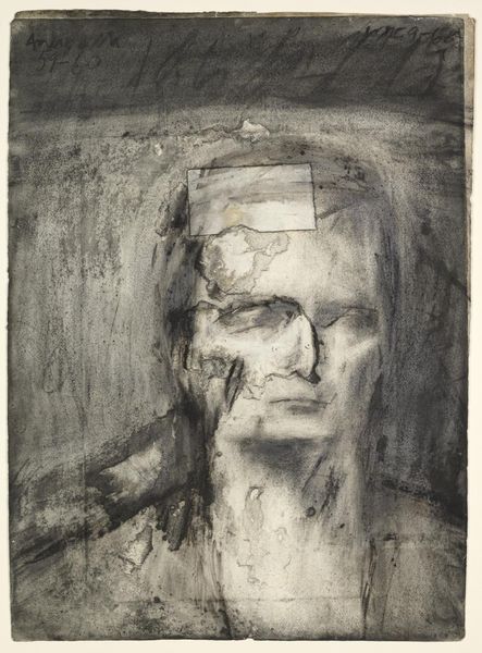 Curator: Look at this intriguing artwork, "Rodin Menace" by Vincent Xeus, an oil painting that offers a contemporary take on classical portraiture. The subject matter presents a painted head or bust, surrounded by abstract brushwork. What do you first notice about it? Editor: It's incredibly evocative! There is an unsettling quality to it, maybe even violent, which stems from the dripping paint and stark contrasts, challenging conventional expectations for figuration. It presents this looming question of why a familiar classic is being tainted or destroyed in a painting of oil on what appears to be canvas or board? Curator: Indeed! Let's consider the implications of employing traditional painting techniques for such an expressive artwork. Oil paint allows for blending and layering, thus creating depth. Looking closer, can we see the brushstrokes and paint application? Editor: Yes, you are right. You can see the process. Xeus uses broad strokes in the dark areas to create shadow. You get a real sense of the labor and the raw physicality involved, contrasting with what one expects with traditional painting from say the Renaissance, but it makes me question, why that particular reference? Curator: The choice to depict a classic bust or head could speak to art history's complex relationship with the art world, as well as historical influence. Consider Rodin’s impact: mass production in plaster or bronze of portions of the human body! Xeus engages that sculptural fragment and turns it on its head! How the museum presents, markets and enshrines the old with this artwork in relation is where meaning forms. Editor: Yes, but with this knowledge comes questions regarding our perception. Xeus makes me re-evaluate our perception, challenging how we approach our own practices. Is the menace in the material application or the fact the art itself is not meant to be put on such a high pedestal anymore? Curator: Excellent questions! "Rodin Menace," I think, invites us to look at the material realities and the socio-historical context. Editor: Well said. It makes you re-evaluate art making today. Thank you for this opportunity to analyze Vincent Xeus’ intriguing artwork.