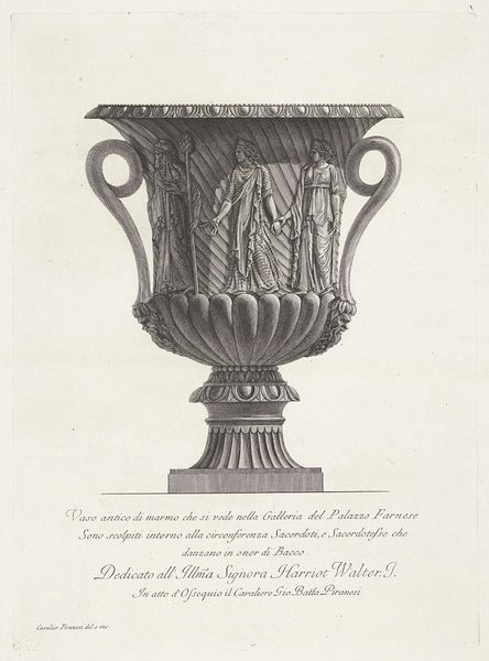 This vase with ancient marble griffins, etched by Giovanni Battista Piranesi, presents a fascinating study in enduring symbols. The griffins, those mythical creatures with the body of a lion and the head of an eagle, stand guard on either side, embodying both strength and wisdom. Across cultures, griffins have symbolized power and protection, often seen in ancient Near Eastern and Greek art, guarding treasures and sacred spaces. Here, they flank a grotesque face of a bearded man with horns, evoking primordial, demonic forms of spirits and deities. Consider how these motifs resonate through time. The griffin, a guardian in antiquity, reappears in medieval heraldry, a protector of noble families. This continuity reveals our enduring psychological need for symbols of power and guardianship. These images tap into a collective memory, engaging us on a subconscious level, reminding us of the timeless human quest for safety and understanding in a chaotic world. Ultimately, this vase is a powerful reminder of how symbols evolve, adapt, and resurface, carrying cultural memory through the ages.
