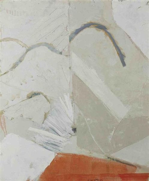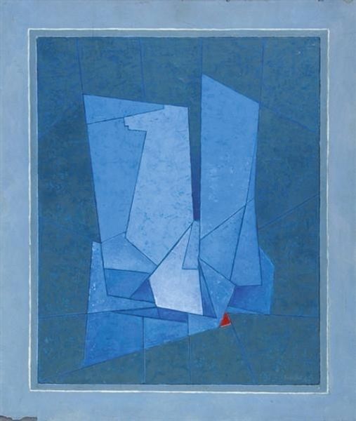 Here we have ‘Composition bleu au dessin’ by Albert Bitran, a painting where the process feels like a conversation. Look at the top left; the blue has this scrubbed, chalky quality. It’s not just slapped on; it's coaxed, layered, and almost erased in places. You can see the ghost of previous marks, like whispers under the surface. The colors, muted and earthy, are punctuated by that intense blue. It’s like a burst of sky in a muted landscape. The surface has a real physical presence. You can see the texture, the little bumps and valleys where the paint has settled. It’s not a slick, polished surface; it's got tooth. It invites you in, makes you want to touch it, to feel the history of its making. Bitran is playing with form, maybe echoing early Cubism, but with something more raw and intuitive, like early Brice Marden, but more provisional. This piece isn't trying to give you all the answers, and that’s precisely where its power lies.