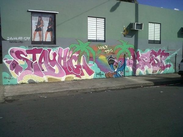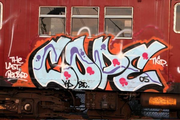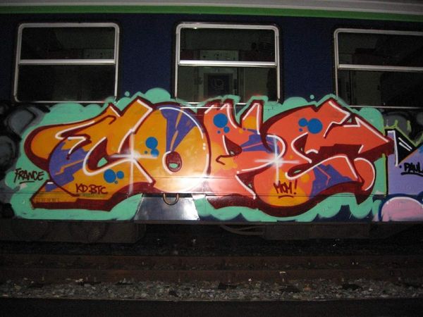 Curator: This mural is entitled "Throw-Up," created by Cope2. At first glance, what impressions does it leave you with? Editor: Well, it feels very assertive and immediate. The monochromatic palette with the blocky shapes against that corrugated wall lends itself to this visual tension between raw urban expression and something a little bit more deliberately constructed. It's both fleeting and permanent, you know? Curator: Absolutely, and the act of "throwing up" as a style carries symbolic weight. This quickly executed form of graffiti functions almost like a signature, a declaration of presence in the urban landscape. Editor: Right, the lettering also tells such a powerful story. It reads 'COPE2' and 'Bronx King!'. Given Cope2's history in the Bronx, doesn't that assertion become part of a much larger narrative about claiming space and identity within a historically marginalized community? Curator: Precisely. Notice too the almost playful use of the tag “Tokyo, Japan”. Street art, as an extension of urban life, connects globally. A symbol acts as a constant that persists despite location, in defiance of ever-changing material contexts. Editor: That makes me think about the accessibility of the medium too. Unlike traditional artworks displayed in galleries or museums, the street becomes the canvas. It engages passersby directly, making art more accessible to everyone, which speaks to the powerful democratic potential of street art. Curator: It's true, the use of shadow and a slight 3D effect, even in such a rushed work, indicates attention to artistry in addition to communicating identity. To what extent is graffiti art historically an attempt to beautify often bleak or neglected environments? Editor: It absolutely can be, though beautification, if it's the intent, often clashes directly with legality and authority. Street art is often about challenging power structures as much as it is about aesthetics. Looking at the historical context of cities around the world, this claim takes various shapes, but fundamentally involves visibility and voice. Curator: So this is more than mere vandalism then. We see echoes of self-assertion and the declaration of territory, an age-old behavior exhibited by humans and animals. What is our compulsion for this type of visual mark-making? Editor: I'd say Cope2’s "Throw-Up," is so complex because it distills something so urgent about belonging, challenging, and visually reshaping our environment through symbolic tags. Curator: Ultimately a fleeting snapshot of contemporary culture. Editor: Definitely a provocative moment captured.