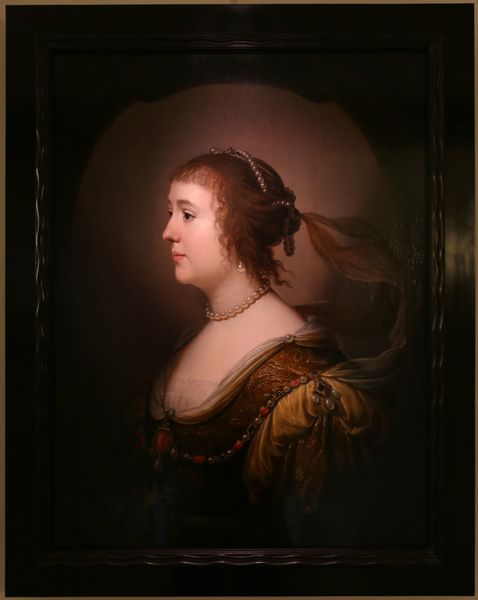 Editor: Here we have Vinteren, created sometime between 1675 and 1775, currently residing at the SMK. I see it is a watercolor painting. The muted colors give it a serene, almost melancholic air, and I am drawn to the texture created by the watercolor on the surface. How do you interpret this work purely from a formal perspective? Curator: Let's begin with the figure. The subject is meticulously placed off-center, disrupting what might otherwise be a predictable symmetry. Notice the chromatic scale: the dark browns and golds of her dress create a grounding effect, yet the pale blues in the upper-left introduce a certain ethereality. This palette choices set up visual tensions. Editor: Yes, and her gaze also directs our focus, doesn't it? Away from that imposing vase, almost as though it is weighing on her mind. Curator: Precisely! Observe the semiotic function of the window and winter foliage. Bare branches and an overcast sky can often imply a state of psychological winter, mirroring the apparent pensiveness of the portrait's subject. The overall composition is less about straightforward representation and more about evoking mood through formal means. Editor: So it's the elements like the color palette and composition that truly guide our understanding of the piece, rather than just the historical narrative? Curator: Indeed. Consider how a different colour choice might shift the interpretation. Would a brighter palette, different symmetry of lines, or more central positioning dramatically alter our perception, moving us away from a subdued pensiveness? The interplay between these components—texture, color, composition—is key. Editor: That’s a really interesting way of approaching the piece. I’ll definitely think about those elements of composition in future works, considering the implications that even small alterations can make!