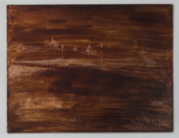 Antoon Derkzen van Angeren made this evocative river landscape with a tower, rendered in shades of brown, sometime during his career in the first half of the 20th century. Born in the Netherlands, Van Angeren’s work emerges from a cultural context deeply rooted in landscape painting, yet his approach here feels markedly modern. The painting eschews the overt precision and romanticism of earlier Dutch masters, favoring a more ambiguous, emotionally charged depiction. What strikes me most is the way the indistinct tower and landscape elements seem to emerge from and dissolve back into the dark, brooding earth tones. This creates a dreamlike effect, where the solid structures of civilization seem transient and perhaps even ghostly. The emotional resonance of this piece lies in its ability to evoke a sense of nostalgia and the passage of time. It’s as if Van Angeren invites us to contemplate our own place within the landscape, and the histories embedded within it.