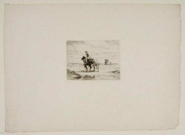 Curator: Here we have Ernest Meissonier's "Sergeant Rapporteur," a scene captured with remarkable economy of line. What catches your eye first? Editor: The sheer emptiness around it! It feels like a tiny stage set adrift in a sea of white. Makes you wonder what grand narrative this snippet belongs to. Curator: Indeed. Consider the composition: the figures clustered around the table, the play of light and shadow suggesting a moment of intense deliberation. The stark negative space amplifies the scene's psychological weight. Editor: True, there's a real gravity to it. The way those figures lean in, you can almost hear the whispers. Is it a war room? A secret meeting? Curator: Meissonier, known for his meticulous detail, here relies on suggestion. It invites speculation, forcing us to fill in the blanks, projecting our own interpretations onto the scene. Editor: It’s like catching a fleeting dream, isn't it? A whisper of history, incomplete yet resonant. Makes you ponder the stories we tell ourselves about the past. Curator: Precisely. Its incompleteness is its power. Editor: Absolutely, a beautiful little enigma.