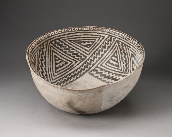 This bowl, adorned with striking black-on-white diamond and zigzag motifs, was created by an Ancestral Pueblo artist. For centuries, the Pueblo people, who are Indigenous to the Southwestern United States, have used pottery to meet both practical and artistic needs. The geometric designs aren't merely decorative; they carry deep cultural significance. The diamond and zigzag patterns may represent natural elements like mountains, water, or lightning, reflecting the Pueblo people's close relationship with the land. The bowl could have been used in everyday life, as well as in sacred rituals. Consider the hands that shaped this bowl, the knowledge passed down through generations, and the stories embedded in its design. This bowl invites us to reflect on the rich heritage and enduring spirit of the Ancestral Pueblo people. It's a testament to the power of art to preserve culture, express identity, and connect us to the past.