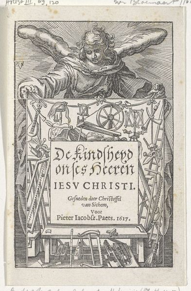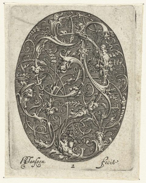 Curator: I’m immediately struck by how ornate and almost whimsical this design is. It's as if practical adornment has become an invitation into another realm. Editor: Indeed! This is the title page from “Des Pendants de Cleffs pour les Femmes,” created between 1580 and 1600 by Johann Theodor de Bry. It’s an engraving, intended to showcase designs for pendants, specifically key pendants for women, as the title tells us. Curator: “Key pendants for women”—the very notion sparks curiosity. It’s intriguing how a seemingly simple item gets elevated, transformed into wearable art. What do you make of the figures, these cherubs, mythical beasts and seductive ladies intertwined within? Editor: Right? Well, these weren’t mere decorations; they signified status, identity, and access. Keys symbolized control over households and belongings, while the artistic pendants asserted a woman's position and taste within society. This piece acts as a glimpse into Renaissance notions of gender, ownership, and adornment. Curator: So it’s a confluence of the ornamental and the functional, of personal expression and societal role. I see now what felt both magical and a little burdened: This image represents the delightful possibilities available only within the framework of societal constraints of women’s station in the Renaissance. Editor: Exactly. These key pendants offered an avenue for agency but remained tethered to restrictive realities of the time. It makes one wonder, how did these designs play into a woman’s negotiations of space, authority, and autonomy? How did women actually *wear* them, and what did it signify to be bejeweled in such a blatant indication of privilege and domesticity? Curator: Right. Like walking around with a glittering résumé, listing responsibilities alongside assets. Editor: It’s the dialogue between private life and public display that resonates today. I see so much historical DNA embedded in present-day conversations about power, access and visual representation. Curator: I'll look at keychains, even simple rings on bags, in a totally different light from now on. There is always history within something. Editor: The conversation this artwork creates between art, society, and identity keeps going, across the centuries.