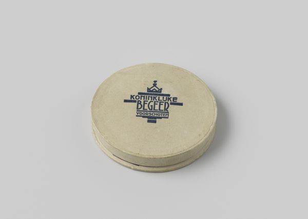 Editor: So, here we have a photograph of a box, dating back to 1952, titled "Doos horend bij een bronzen penning". It seems to be made of paper. It feels rather unassuming, yet there's a strange kind of deliberate simplicity to it. What draws your eye when you look at this piece? Curator: Immediately, the composition. Notice how the photographer has positioned the box – it's not perfectly square, but subtly angled. This creates dynamic tension and avoids what could have been a very static, uninteresting image. Furthermore, examine the contrast; the off-white paper against the neutral background generates subtle tonal variations. Editor: I see what you mean about the angle creating tension. I hadn’t really thought about that initially. What about the inscription on the box? Does the text contribute to the visual experience at all? Curator: Indeed. Semiotically, the text acts as a signifier, offering context – hinting at provenance and date. But on a more fundamental, visual level, the handwriting provides texture and interrupts the otherwise smooth surface of the paper. Consider how different the image would feel without that inscription – much colder, much more detached. The photograph depends on this visual relationship of inscription to its material qualities to make itself relevant. Editor: So, the contrast between the rigid box shape and the freehand writing introduces a certain human element? Curator: Precisely. This interplay creates the overall effect. What at first seemed uninteresting now displays formal complexities. A dynamic asymmetrical arrangement made all the more intimate through visible evidence of handwritten inscription. Editor: I never thought I would be this fascinated with an image of a paper box. I've learned that even something seemingly simple can be appreciated if you examine it through form and composition. Thank you. Curator: My pleasure. Paying close attention to such intrinsic details and structure illuminates aspects missed upon casual viewing.