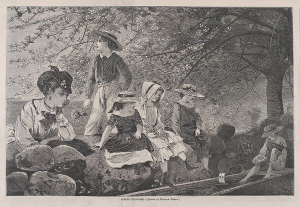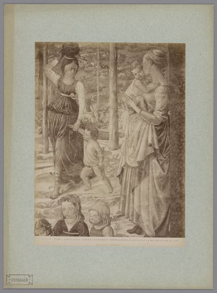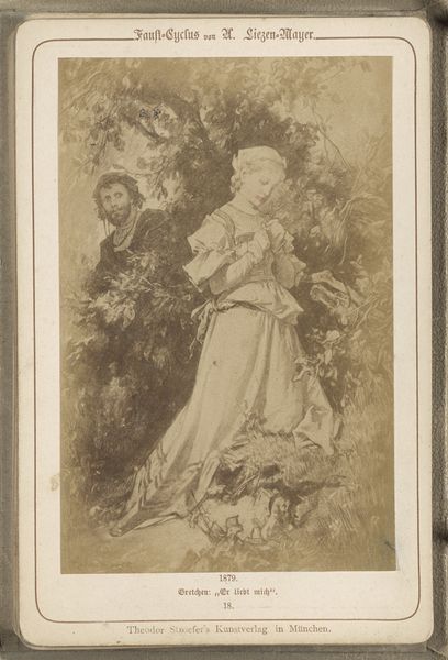 Editor: This is a reproduction of a drawing, supposedly titled 'Gretchen en haar zusje', dating back to 1879. It looks like pencil and maybe charcoal were used. I'm immediately struck by how sentimental and, dare I say, idealized the image feels. What can you tell me about this piece? Curator: Sentimentality is definitely a lens through which to examine this piece, particularly within the context of 19th-century European society. Reproductions like this, making art accessible, also helped spread certain ideals about childhood and sisterhood, but whose ideals were these? This image promotes ideas of domesticity and innocence. How do you think that intersects with the expectations placed upon women and girls during this period? Editor: That's a great point. I see how the focus on domesticity reinforces traditional gender roles, confining women to the private sphere. Were there artistic counter-movements challenging these norms at the time? Curator: Absolutely. While sentimental genre scenes were popular, artists like the Impressionists and Realists were exploring different perspectives on modern life, sometimes challenging those very societal expectations. Now look at the composition. What do you notice about the power dynamics at play here between the sisters? Is there anything unsettling? Editor: I see the older sister reaching out to the younger one, almost presenting her with something, but the younger sister's doll lying on the ground seems to subtly hint at childhood's end and the expectations of performance. The reproduction also makes me think about how accessibility and widespread distribution contribute to constructing narratives around family and childhood. I see your point about this art upholding the values and power structures that defined the roles of women in the late 1800's. Thank you for sharing your insights. Curator: And thank you for prompting such important connections! This reminds me of how images circulate, creating both individual meaning and larger cultural frameworks that still resonate today.