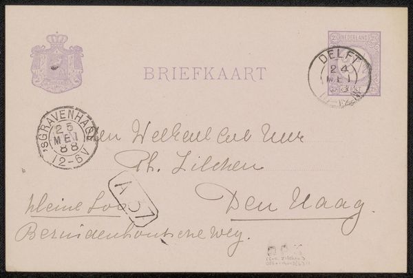 Curator: This is "Briefkaart aan Philip Zilcken," a postcard, possibly from 1893, by Jan Veth. It's currently housed in the Rijksmuseum. I'm immediately drawn to its intimate scale and the personal nature of a handwritten note. What are your first thoughts? Editor: I noticed how delicate the handwriting is, and the faded stamps give it a feeling of history. What can you tell me about its cultural context and historical background? Curator: Looking at this, I immediately think about the rise of mass communication in the late 19th century. The postcard itself becomes a democratizing force. Who had access to this form of communication, and how might it have shaped their social and political interactions? Veth, as an artist embedded in intellectual circles, sending this to Zilcken – what does that say about their relationship, their network, and the exchange of ideas happening within that network? Consider also the postal system as a vehicle for state power and control, and how this little postcard plays into that larger picture. Editor: So, the act of sending this postcard becomes a political statement, too? Curator: In a subtle way, yes. Who could participate, who was excluded? How did these networks of communication reinforce or challenge existing power structures? It opens up fascinating questions about access, privilege, and the seemingly mundane objects of daily life carrying deeper significance. It shows us how artists existed within a certain social fabric, using it but maybe also changing it. Editor: I didn't consider how something so simple could connect to all those bigger ideas. Curator: That's where the real richness lies. Even something as straightforward as a postcard can reveal layers of social and political dynamics when viewed through a critical lens. Editor: Thank you, I have a fresh perspective on everyday ephemera now! Curator: That’s exactly what approaching art with an activist mindset encourages.