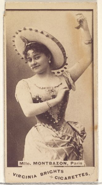 This card, featuring Mlle. Mayer, was printed by the Kinney Brothers Tobacco Company as part of a series of actresses used to promote Sweet Caporal Cigarettes. The late 19th century saw an explosion in commercial imagery, intertwining consumer culture and popular entertainment. The photograph presents Mayer in a somewhat exoticized "Oriental" costume, complete with tambourine. This was a common trope of the era, reflecting both fascination with and misrepresentation of non-Western cultures. Such images played into existing social hierarchies, reinforcing dominant cultural norms while simultaneously offering consumers a taste of the "other." Consider how the institutions of advertising and entertainment colluded in shaping public perceptions. Researching advertising history, theater archives, and photographic collections would shed further light on the social context of this image. In the end, studying such cards provides insights into the cultural values and power dynamics of its time.
