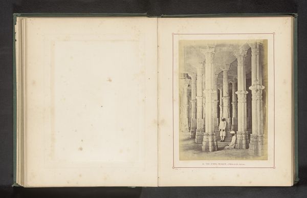 This photograph shows the pillars of the Haibat Khan Mosque in Ahmedabad, captured by Thomas Biggs. The mosque, built in a time of cultural exchange, embodies the complex identities and histories of its creators and users. Biggs' photograph offers a glimpse into the architectural beauty of the mosque, but also invites us to consider the power dynamics inherent in the act of documenting another culture. Who is invited into the space, and who is left outside? What is the relationship between the photographer, the architecture, and the people who move through the space? The lone figure standing between the pillars reminds us of the human presence within these grand structures, and perhaps, of the many untold stories of those who have found solace, community, or resistance within its walls. This photograph serves as a reminder of the layered meanings embedded in places of worship and the importance of understanding their social and historical contexts.