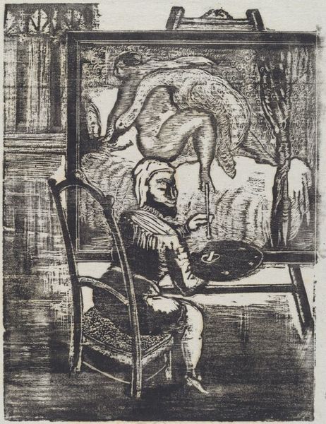 Editor: This is Imre Reiner's "Illustration to Hesiod," created in 1949 using ink and etching techniques. There's a disquieting feeling, a surreal almost nightmarish quality to the forms. The human figure looks ravaged. What strikes you when you look at this piece? Curator: It’s crucial to understand the post-war context of this image. Created just after World War II, it's reasonable to read the figures through the lens of the collective trauma and social upheaval of the time. Reiner, working in Switzerland after fleeing Nazi Germany, was undoubtedly processing this era. Does that inform how you see the damaged figure? Editor: Yes, definitely. That understanding reframes the whole piece. The etching seems less abstract and more of a direct reaction to a period of suffering. Curator: Consider the role of illustration itself. These weren't just decorations, but visual interpretations meant to deepen public understanding and engagement with Hesiod's text. Think about who would have been viewing this; what anxieties might they have brought to the image? Editor: So the illustration becomes a shared space where anxieties about survival and social collapse are processed alongside the myth? I am also seeing symbolist elements, with figures acting as a mirror reflecting broader existential concerns. Curator: Precisely! And think about the act of illustrating ancient texts. It positions contemporary anxieties within a historical continuum, suggesting that these struggles are somehow universal and perpetually relevant. It suggests art's unique contribution to cultural memory. Editor: I had never thought about the public and the purpose of these illustrations! It all comes together in this intense visualization. Curator: Seeing it in this context helps unlock the layers of meaning Reiner embedded within it.