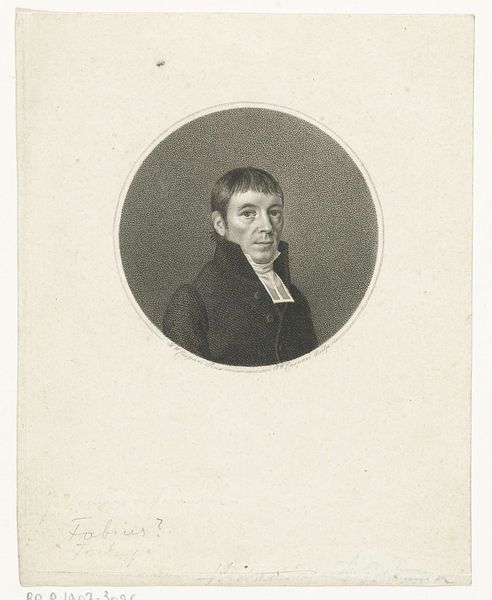 Editor: So, here we have "Portret van Auguste Hilarion, graaf van Kératry," an engraving from around 1820 by Ambroise Tardieu. The tight oval frame makes the subject seem kind of formal and constrained. What stands out to you? Curator: It’s a fascinating example of Neoclassical portraiture adapting to the post-revolutionary era. While the sharp lines and controlled composition echo earlier styles, consider the sitter's gaze. Does it strike you as embodying the confidence one might expect of nobility during that period, or perhaps something else? Editor: He doesn’t exactly scream revolutionary spirit, but there's a certain unease that seems present. Maybe I’m just projecting? Curator: Not necessarily. Think about the socio-political climate. While officially the aristocracy was back, their power was forever altered. This engraving, made for public consumption, walks a careful line. How do you see the choice of engraving, a relatively reproducible medium, playing into the image's function as public art? Editor: Engraving makes it accessible, right? Maybe this was meant to project a carefully managed image of authority, reassuring to some but perhaps unsettling to others, given the recent upheaval. Curator: Exactly! It is less about individual likeness and more about the *idea* of nobility being presented to the public. It also reflects how even traditional art forms adapted to a changing market where images were increasingly circulated. We can imagine this work appearing in print form to build narratives about a figure in power and shape popular perceptions. The question remains how that reception evolved across the 19th century as new social classes emerged in Europe. Editor: So, the choice of medium is less about artistic expression and more about social function in this case. Interesting, it’s not just a picture but also part of a wider message! Curator: Precisely, by understanding art’s connection with sociopolitical dimensions and imagery circulation. We can have more in-depth appreciation and understandings of a piece like this.