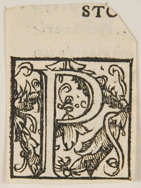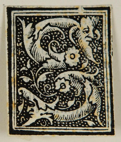 Curator: Looking at this small block print, "Letter R," created by an anonymous artist, I'm immediately struck by the density of detail packed into such a tiny space. Editor: Yes, the initial impression is one of visual tension! The stark contrast and ornate details feel like a deliberate attempt to command attention, despite its scale. Curator: The "R" itself, intertwined with foliate designs, speaks to the medieval tradition of illuminated manuscripts, where the letterform transcended mere function to become a vehicle for artistic expression and social meaning. Editor: Absolutely. The letter, as a symbol, carries the weight of language, power, and authority. Its integration with organic, almost untamed forms suggests a dialogue between order and nature. This tension can be interpreted as a reflection of broader societal struggles for control and identity. Curator: A valuable insight. I think it is important to recognize the power of visual culture in reinforcing or challenging existing structures. Editor: Indeed. Visual symbols, like this Letter R, are never neutral, which makes this artistic exploration so worthwhile.