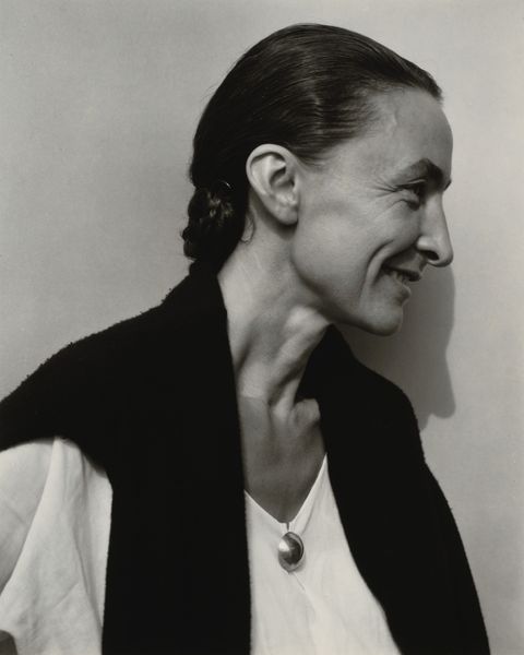 Alfred Stieglitz made this photograph of Georgia O'Keeffe using gelatin silver print in the first half of the 20th century. It's so pared back, isn't it? Like a charcoal drawing, but with light. What grabs me is the way the light catches the curve of her neck, that tiny mole, like a misplaced full stop. I wonder what Stieglitz saw in that moment, what he wanted to capture. The texture of the print is so smooth. You can almost feel the cool, slick surface. It's this simplicity that holds so much power. There's this tension between the flatness of the image and the volume and depth it suggests. Thinking of other portraits, like those by Lucien Freud, where every wrinkle and pore is laid bare, this feels like a study in restraint. It's a conversation, a kind of silent dialogue between two artists who were deeply involved with each other, both personally and creatively. The photo feels like a shared thought, suspended in time.