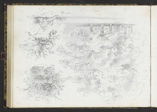 This landscape drawing by Charles Lanman presents a scene rendered with delicate graphite. The initial impression is one of serene desolation, achieved through subtle gradations of tone and carefully placed linear elements. The composition hinges on a contrast between solid and void. Architectural ruins stand against a reflective body of water, their verticality mirrored in the tranquil surface. The artist employs a restrained palette, relying on the stark contrast between light and shadow to define form. Note how this tonal variation creates depth, guiding the eye through the composition. The crumbling structures imply a narrative of decay and the passage of time, a common theme in Romantic landscapes. Lanman's strategic use of atmospheric perspective reinforces the idea of an infinite space stretching beyond the immediate foreground. The scene is not just a representation of nature, but an engagement with cultural and philosophical ideas about history and memory. Consider how Lanman uses the landscape as a canvas, inviting ongoing contemplation and interpretation.