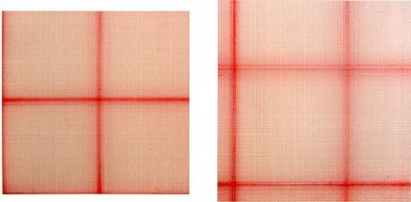 Angela Bulloch made this light installation called Z Point, where illuminated squares are arranged in a grid, like a minimal computer screen. It's got this amazing gradient from white to red, making the surface look like it's almost breathing, or maybe melting. The materiality here isn't about thick paint or gestural marks. It's light itself that is the medium, and that’s what gives it such a different feeling. The evenness of the squares and the way they shift in tone gets to something about how we perceive changes on a very gradual, incremental level. You know, like when you’re staring at a sunset and think it looks the same, and then suddenly it’s totally different? Bulloch's work has some connections to earlier artists exploring seriality and systems, like Sol LeWitt. But with the light, she brings something so current to it, like the internet, or something. It's cool how she makes the piece feel so present and in process, even though it's all clean lines. It's like a really analog version of super-digital stuff.