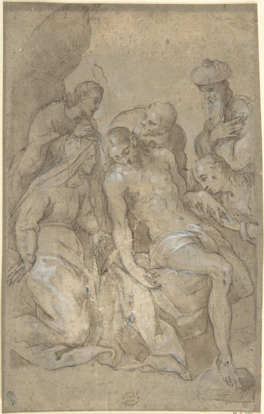Guglielmo Cortese rendered this drawing, "God the Father and the Holy Spirit Receiving the Body of Christ," using red chalk. It is a poignant depiction of divine embrace. Here, the Holy Trinity is suggested through potent symbols. God the Father gestures in welcome. The dove, representing the Holy Spirit, descends with grace. Christ's lifeless body is surrounded by cherubic figures. This arrangement echoes earlier depictions of piety and martyrdom, like those of ancient Greek heroes received into Olympus. Consider the recurring motif of the descending spirit—a symbol found in various cultural narratives, from the Egyptian depictions of souls descending to the underworld to the Greek concept of the 'pneuma' or breath of life. This symbol is a collective human yearning for transcendence. Notice the deep emotional power in Cortese's composition, engaging the viewer in the tragic sacrifice, and eternal love. These symbols, ever-evolving, resurface throughout art history, reminding us of our shared cultural memory and the timeless quest for understanding the divine.