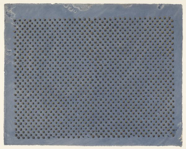 Editor: So, this is an anonymous book cover from between 1800 and 1900, residing here at the Met. It's a drawing or print featuring an all-over geometric pattern in red. The intensity of that repeating shape makes me think of a kind of optical illusion. What’s your take on this piece? Curator: Well, isn’t it scrumptious? Like a faded candy wrapper discovered in Grandma’s attic. That repetitive geometric pattern in faded red reminds me of patterns from Islamic art… think mosaics in old palaces! Except, instead of suggesting paradise, this whispers… domesticity? Or perhaps a yearning for something more elaborate contained within a humble object? Does it evoke any specific historical period for you? Editor: Not particularly… it’s sort of timeless. Maybe Arts and Crafts? Though simpler, less detailed. But why focus on its function as a book cover? Doesn't the geometric pattern stand on its own? Curator: Oh, I'm simply musing on how function informs form. As a book cover, its design would be intimately connected with the book's contents, both physically and metaphorically, sheltering it from the world and teasing what awaits inside. Consider also, though... What emotions does that all-over repetition conjure? Does it evoke the steady hum of daily life? Editor: It definitely has a calming effect… I see what you mean. It almost invites you to enter its rhythm. Like a portal. I wouldn’t have considered that! Curator: Exactly! Art is not solely about overt representation but an emotional journey. I'm not even sure it’s "good" art, in the traditional sense of mastery… But oh, its atmosphere! That counts for something. Right? Editor: Right. It is pretty cool how something so simple can have that effect. Thanks for sharing your thoughts on this artwork.