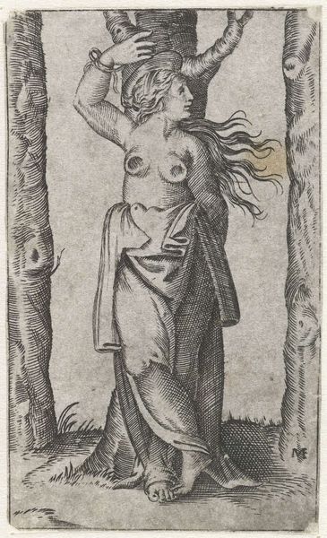 This print depicts Saint Agatha bound to a tree, an image wrought with symbolism. The tree, a classic symbol of life and connection, here becomes an instrument of her torment, emphasizing her vulnerability. Agatha, her hair flowing wildly, recalls images of ecstatic female saints and mythological figures, a visual echo that intertwines religious devotion with primal emotional states. Consider how the motif of binding appears across cultures, from the restrained figures in classical sculpture to the dramatic martyrdom scenes in Baroque art. The ropes that restrain Agatha also connect her to the tree, mirroring the complex interplay of freedom and constraint in the human psyche. This image resonates with the powerful, often subconscious, themes of sacrifice and resilience. Observe how such iconography is not static; it evolves, resurfaces, and is imbued with new meanings, demonstrating culture's cyclical dance between past and present.
