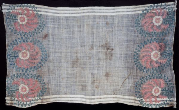 Here is a handmade bed curtain end, crafted by an anonymous artist, offering us a delicate yet complex glimpse into cultural beliefs. Looking at the embroidered details we see the swastika, a symbol that, prior to its appropriation by the Nazi regime, carried meanings of well-being and good fortune in various cultures. Its presence here invites reflection on the historical context and the cultural exchange of symbols, before it became a signifier of hate and genocide. The patterns, rendered in soft blues, greens, and yellows, speak to a tradition of textile art deeply embedded in daily life, reflecting the skill, labor, and personal expression of its maker. Consider the intimacy of a bed curtain, a shield for the private moments of rest and contemplation. In repurposing and recontextualizing these symbols, we can reflect on how history and personal narratives are woven together.