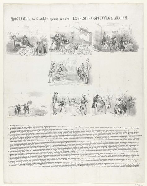 Curator: This print captures the wedding of Willem V and Wilhelmina of Prussia in 1767. It’s currently held at the Rijksmuseum. An anonymous hand rendered the original engraving on textile. What's your initial reaction to this piece? Editor: Regal, yet somehow constrained. The composition feels rigid, almost performative. There is something quite static about the group arrangement in the relatively shallow pictorial space. The textile adds an interesting tactile quality that contradicts the formal stiffness. Curator: Let’s delve deeper into the symbols then. Observe how the bride's veil dominates the right side, almost eclipsing the royal figures. It represents not only purity, but also perhaps the weight of expectation placed on Wilhelmina. Then note how the groom stands facing forward in contrast to his bride. The entire engraving feels orchestrated with potent significance. Editor: I agree, the veil becomes an almost oppressive element—it carries significant weight both visually and symbolically. However, structurally, it provides a crucial counterweight to the gathering on the left, maintaining visual balance within the engraving. And what does it signify if we ignore its narrative symbolism, focusing instead on how it guides the viewers' gaze. Curator: Excellent point. From an iconographic viewpoint, consider the chandeliers above. They signify wealth, divine light, and perhaps the enlightenment ideals influencing the era. They're positioned quite high, creating a hierarchical visual structure. Is there more for our guests to observe? Editor: Yes, consider the engraver's lines. The crisp delineation creates contrast with the flat and monotone color palette of the textile medium. Also, the density of detail varies greatly across the surface of the print; note how much more attention is lavished on clothing folds in the royal group to the right, as compared with that devoted to secondary members of the wedding party, especially on the left. This intentional disjunction invites layered structural inquiry. Curator: By focusing on this historical portrayal of royal alliance, we’ve illuminated how symbols work in concert with the overall structural and material choices, even within what might seem a straightforward depiction of a historical event. Editor: Absolutely. What began as a formal arrangement unravels into a rich study of cultural symbolism and the strategic execution of Baroque printmaking techniques. A happy occasion— and one pregnant with semiotic opportunity.