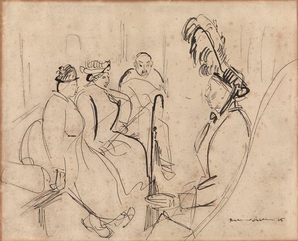 Editor: We're looking at "Holy Family with Two Children," a drawing in ink on paper dating roughly from 1650 to 1750 by an anonymous artist. The composition, with the woman and children huddled together, feels intimate despite the rather grand architectural elements in the background. What strikes you most about this piece? Curator: What's most striking to me is the visual tension created by the institutional trappings alongside this familiar scene. Notice how the colossal column dwarfs the figures, how the sketchy rendering almost undermines the gravitas typically associated with the Holy Family. What effect might this have on viewers of the time? Editor: So, is the artist perhaps making a statement about the role of the Church within domestic life? Curator: Precisely! This could be a subtle commentary on the Church's presence, perhaps even its overbearing presence, within the sanctity of family. Consider how genre painting during this era often served as a vehicle for social critique. Is there a sense of unease here or just a matter-of-fact observation? Editor: It’s subtle. The lightness of the linework almost softens any potential critique. Maybe it's about the ubiquity of religious influence? Curator: That’s insightful. Think about the role imagery played then – a time when religious artwork was often tied to patronage and societal power structures. An anonymous artist may allow the artist to voice some ideas while circumventing potential repercussions, but we also acknowledge some uncertainty of whether to read these implications into the sketch. How does this reading affect your initial reaction to the mood of the piece? Editor: I initially saw it as just intimate, but understanding its potential for social critique, it's much more complex. Thank you, I had not considered that. Curator: My pleasure. Understanding the socio-political landscape really unlocks another dimension to even the simplest appearing art.