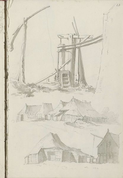Dirk Valkenburg made this drawing of a lock on the Palmeniribo plantation in Suriname. It's rendered with pen in grey ink. Valkenburg, a Dutch artist, spent time in Suriname in the early 18th century. Plantations like Palmeniribo were central to the colonial economy, relying on enslaved labor to produce commodities like sugar and coffee for European markets. This drawing offers a glimpse into the infrastructure of these plantations, depicting a sluice used to manage water levels. The stark, technical style emphasizes the engineering aspect, yet it also hints at the broader socio-economic context of exploitation and forced labor. To understand this drawing fully, we might look at historical records of plantation management, colonial trade, and the lives of enslaved people in Suriname. Only then can we fully appreciate the complex interplay of technology, power, and human experience embedded within this seemingly simple image.