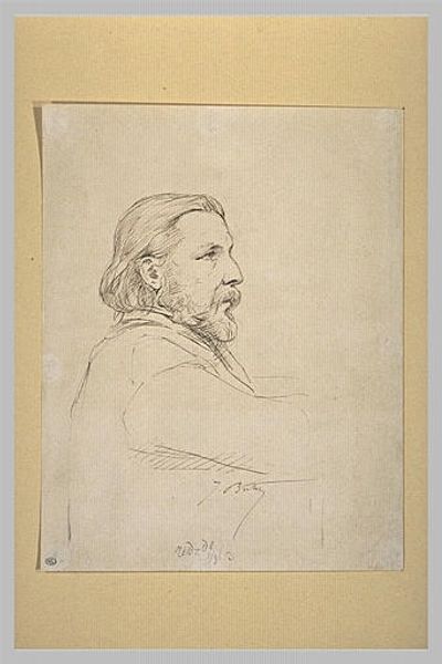 J.H. Schulz made this graphite portrait of O. Rietschel in the nineteenth century. It’s a tightly cropped profile, focusing our attention on Rietschel’s features and expression. It’s worth considering how portraiture functioned within the social context of 19th-century Europe. Likenesses were powerful tools for establishing social status. While photography was emerging, drawings and paintings retained a unique aura of artistry and exclusivity. The subject's clothing and bearing speak to a certain level of affluence and social standing. What’s interesting here is the intimacy of the drawing style. It’s not a formal, commissioned portrait, but rather feels like a study, perhaps created among friends or colleagues. This hints at the social circles in which artists and intellectuals moved, and the importance of personal connections in fostering creativity and professional advancement. To understand this work more fully, one might research the biographies of both the artist and the sitter, exploring their roles within the artistic and intellectual landscape of their time. By examining historical records and personal correspondence, we can uncover the networks of influence and patronage that shaped their careers and creative output.