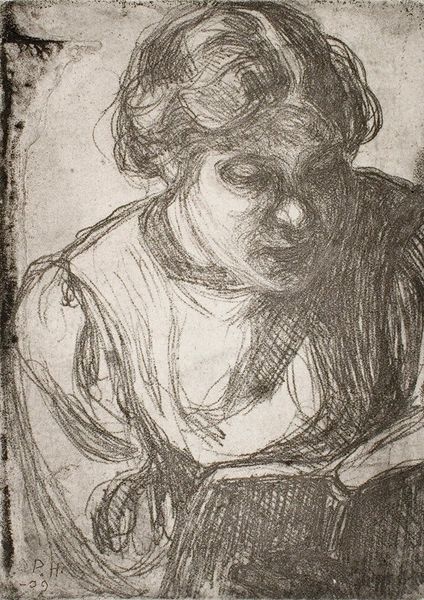 Curator: This etching, “Claude Renoir, de trois-quarts à gauche,” was completed by Pierre-Auguste Renoir in 1908, as part of a series of intimate family portraits. Editor: The first impression is one of incredible fragility. It feels ephemeral, a fleeting glimpse. There’s a melancholy about the subject, even. Curator: As a print, an etching specifically, the work allows us to consider how Renoir embraced more accessible and reproductive technologies, to, arguably, distribute his art among a wider, more diverse audience. One far exceeding traditional aristocratic art patrons. Editor: But even in this "accessible" form, the linear composition is exquisite. Notice how the delicacy of line around his hair and face contrasts with the sketchy, almost scribbled lines forming the background. It really emphasizes the subject. Curator: And what does this say about Renoir’s construction of his domestic sphere? His children becoming both his muse and the very subjects feeding the art market he navigated. What dynamics does this subtle inscription of power reveal? Editor: Power is interesting, but I see the expressiveness primarily, with the direction and weight of lines capturing light, shadow, form... Notice especially the delicate rendering of the cheek, barely suggested. There is such subtle dimensionality in such simplicity. Curator: Absolutely, and what cannot be overlooked is the role of Claude, the young boy we see depicted here. Son to Renoir and a participant within the family enterprise, in a sense, his image being both product and commodity. Editor: That provides a very different understanding. Ultimately, I’m drawn to the work's emotional and formal interplay—a masterclass in how to capture youth and a hint of inner thought. Curator: And I’m equally struck by how it encourages one to consider the political and economic implications ingrained within its making, production, and distribution. Editor: Yes, between the ethereal aesthetics and the practical matters of its creation, it certainly grants plentiful interpretations.