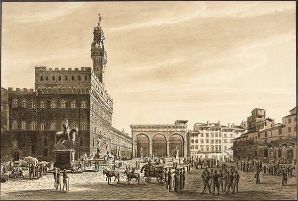 Fyodor Alekseyev created this watercolor painting, *North side of Red Square*, capturing a slice of 18th-century Russian life. Alekseyev, who became known for his cityscapes, invites us into a world of imperial grandeur and bustling commerce. What strikes me about this image is how it subtly portrays the era's social hierarchy. The architecture speaks of imperial power, yet the figures populating the square, from the gentry in their carriages to the merchants hawking goods, indicate a society in transition. I'm drawn to how Alekseyev balances the monumental with the mundane. He doesn't shy away from depicting the grit and grind of everyday life alongside symbols of power. The painting becomes a social document, reflecting not just the physical space of Red Square, but also the complex relationships within Russian society. What do you see in the painting? Through his detailed depiction, Alekseyev offers us a glimpse into a time of shifting social structures, inviting reflection on Russia's evolving identity.