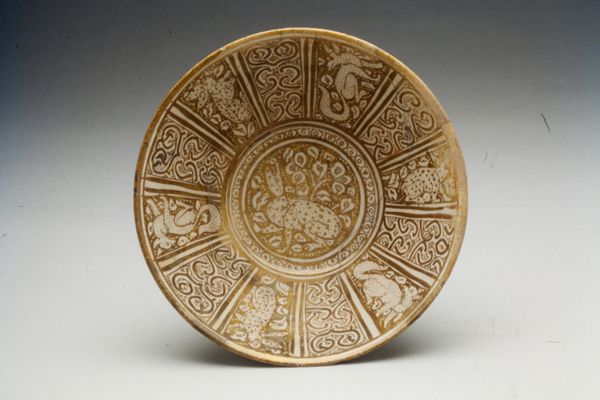 Curator: Standing here, we have a basket, a rather captivating piece from the 19th to 20th century. It is attributed to the Indé, or Apache, people and is now part of the collection here at the Minneapolis Institute of Art. Editor: My first thought: wow, so precise. It looks like a cosmos contained within a bowl. Do you get that? A dizzying center and then shapes spiraling out to what feels like an unknown circumference... Curator: Exactly! I love that the weaving shows off incredible technical skill, while still conveying movement. Consider what's actually happening: gathering the raw materials, prepping and dyeing them, then the long hours of careful, repetitive handwork that becomes the piece. Editor: And look at the geometric patterns. I am sure that these have specific, deeply symbolic meanings rooted in their traditions and beliefs. Are the patterns standardized, perhaps used across generations? How would it have been employed in daily life, maybe? Or ritual ceremonies? Curator: It would have had incredible functional value in its own time. Today, displayed in a museum like this, removed from its original social context, we almost exclusively value its aesthetic properties as fine art. Its story becomes detached from the people who made and used it. Editor: True. And also divorced from our understanding of global economics! I wonder about access to resources? If this level of craft production signals relative wealth, is there also evidence to illuminate any complex system of trade? Curator: It's interesting to contemplate. It makes you wonder about the unnamed maker and their intentions—crafting a vessel that's as lovely as it is useful, one which represents continuity through pattern and material, and which offers a fascinating peephole onto our history! Editor: A peephole indeed! Well, I, for one, feel completely humbled by such ingenuity. There’s something so inherently human and reassuring when confronted by something so painstakingly handcrafted.