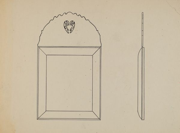 Curator: So, here we have John Tarantino's "Jar," created around 1940, using ink on paper. Editor: Yes, it's a rather simple drawing, almost like a blueprint. It looks like an advertisement for a company based on Little 12th street in New York, can't really make out the rest, though. What is your perspective on it? Curator: What interests me is how this simple ink drawing transcends mere representation. It asks us to consider the jar not just as a container, but as a product, an object of labor, circulated and consumed. The act of drawing it, with a specific address inscribed, brings in the very materiality of urban life and its commercial networks. Editor: So, you're focusing on the object as a manufactured commodity, rather than appreciating it for any artistic merit? Curator: Precisely. Look at the crude lines, almost industrial in their efficiency. What materials were being stored in this container? Where were these containers manufactured and sold? The flowers on the surface - who was the target demographic of these decorated wares? These details reveal much about the intersection of art, labor, and the domestic sphere in mid-20th century New York. What kind of inferences can you make based on these clues? Editor: That’s interesting. I initially saw it as a simple drawing, but considering the potential uses and marketing of the jar really opens up a whole new perspective on its cultural context. It seems less like art and more like functional design, or maybe even an advertisement! Curator: Exactly! And by examining it through that lens, we begin to understand the social forces shaping not only its production, but also its reception. Editor: I see the point now! By focusing on materials and labor, the drawing serves as a great insight on consumer culture in New York, more than just a still life study. Thank you! Curator: Indeed! The 'art' here lies in unpacking its cultural significance.