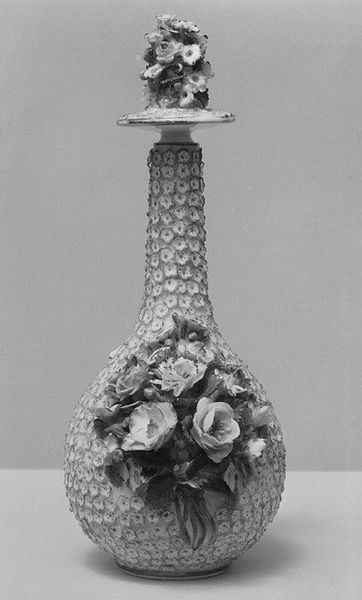 Curator: Oh, it’s gorgeous—utterly baroque, wouldn't you say? Editor: Well, that was my very first thought too...though maybe bordering on rococo? It feels a bit much, and in the best possible way, like stepping into a gilded dream. Curator: Precisely! We’re looking at a wall bracket crafted by the Meissen Manufactory, sometime between 1740 and 1750. Its medium is ceramic – more specifically, porcelain. Editor: Ah, porcelain—so delicate, so easily broken, yet here it is, frozen in flamboyant, joyous display. What kind of world produced this? Curator: A world steeped in courtly aesthetics and rife with socio-political disparities. Meissen porcelain, often emulating styles favored by the elite, served as a status symbol, subtly underscoring social stratification through material culture. These objects perpetuated ideals of refinement and luxury that often obscured systemic inequalities. Editor: Gosh! I'd been dreaming of palaces and silk cushions! This is when that innocent white bird and those abundant white blossoms now start whispering about inequality. Is that naive of me? Curator: Not at all! The floral arrangements and avian motifs are quite telling; they speak to a yearning for the pastoral but heavily idealized, divorced from the harsh realities of rural life experienced by those producing the very raw materials needed for Meissen. Editor: So this isn't just pretty, but almost propagandistic, like it performs certain beliefs, a cultural performance about power, and taste and artificial paradises. What should we make of the fact that these gorgeous objects, meant for candlelight, also participate in making shadow? Curator: The decorative arts often engage in such complex negotiations! By interrogating what appears "beautiful", we engage in discussions that speak directly to issues of wealth, taste, labor and its place within historical discourse. Editor: Food for thought indeed! It makes me want to look harder at other artworks of that time and ask myself not just if something is pretty, but whom it’s actually *for.* Curator: A worthy task! Remember, objects of art act as cultural artifacts. Let them lead your research and reflections!