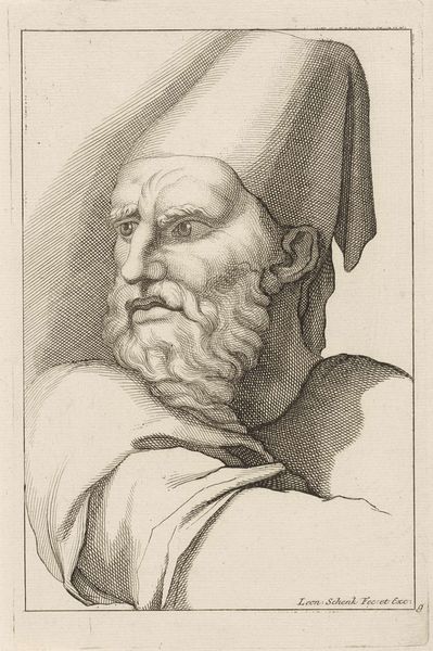 Leonard Schenk created this head study of an old man in the Netherlands, sometime in the early to mid-1700s. This engraving exemplifies the era’s fascination with the antique. Images of philosophers, poets, and even anonymous ‘ancients’ were immensely popular. These images provided a visual link to the wisdom of the past, and were often collected by scholars and the educated elite. The printmaking workshops and distribution networks of the Netherlands were central to this trade. The aged man’s face is etched with fine lines, suggesting a life of experience. His simple cap and slightly dishevelled hair add an air of humility, but do not detract from the intellectual power suggested by the image. Understanding such a work requires knowledge of the history of printmaking, the art market, and the social and intellectual values of the Dutch Republic. These are just some of the research areas that help us to contextualize the image.
