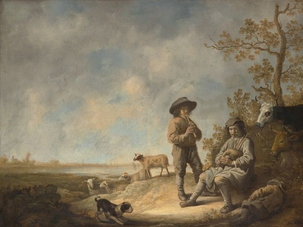Curator: William Frederick Witherington's "The Gleaners" depicts a pastoral scene, its dimensions measuring 117 by 92 millimeters. Editor: It's a humble scene, isn't it? The muted tones and modest scale create an intimate, almost dreamlike atmosphere. Curator: The image of gleaning itself carries deep symbolic weight. Gleaning, the act of collecting leftover crops after harvest, speaks to themes of survival, community, and the social hierarchy of rural life. Editor: Absolutely. It brings up the stark realities of land ownership and labor. These women are quite literally picking up the scraps of a system that may have left them behind. Curator: And, notice the figures themselves. The artist renders them almost archetypal, their forms blended with the landscape, evoking a timeless connection to the land and its bounty. Editor: Yet, despite this apparent harmony, the act of gleaning remains a reminder of economic disparity and the unequal distribution of resources, even in supposedly idyllic rural settings. Curator: Perhaps it's the inherent ambiguity of the scene that makes it so compelling. We see both the beauty and the potential hardship in their labor. Editor: It gives us a window into the complex social fabric of its time, questioning our romantic notions of rural life.