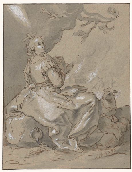Jacob de Wit made this allegorical sketch with brush in grey and brown ink around the first half of the 18th century. De Wit’s work reflects a Dutch culture steeped in both religious symbolism and the rising fashion for classical themes in the arts. The putti, or cherubic figures, are not merely decorative; they represent innocence and divine love, popular motifs in religious art since the Renaissance. The altar suggests a space of worship or sacrifice, linking the earthly and the divine. Made in the Netherlands, this sketch emerged during the Dutch Golden Age, a period of economic prosperity. This prosperity allowed for a flourishing art market increasingly shaped by academies and connoisseurs. Understanding this sketch requires us to consider the religious, economic, and institutional contexts in which it was produced. By consulting period texts, we gain insight into the cultural values that shaped De Wit's artistic choices.