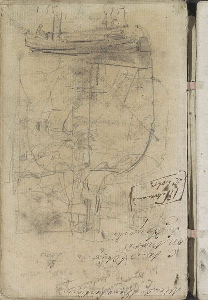 Curator: Here we have George Hendrik Breitner's "Architectuurstudie," a drawing made sometime between 1886 and 1923, rendered in pencil on paper. You can find it in the Rijksmuseum's collection. Editor: It strikes me as almost a palimpsest of ideas—so many overlapping lines and barely discernible shapes. There's a beautiful incompleteness to it, as if we're catching a glimpse of the artist's mind at work. Curator: That's fitting. Breitner was deeply engaged with depicting the modern, rapidly changing urban environment. Drawings like these were vital to his process. They weren’t necessarily meant to be polished finished works, but rather tools for observation and documentation. Editor: I agree. Looking closely, you see how he’s focused less on perfect architectural rendering and more on capturing the play of light and shadow, using swift, almost frenetic strokes. It feels incredibly immediate and present. Curator: Absolutely, and the social context here is key. Breitner positioned himself as the "people's painter." He saw the city not as a static collection of buildings but as a dynamic, living space filled with ordinary people—a space that was evolving dramatically at the time. These studies would eventually inform his larger paintings and photographic works. Editor: But beyond the socio-historical significance, there's just something inherently visually captivating in how Breitner allows the sketch to remain raw and exposed, without trying to fully resolve forms. The textures created by the pencil on paper are also remarkable. Curator: Yes, he's really letting us see his thought process—almost like a stream-of-consciousness mapped out on the page. The urban expansion of Amsterdam was a politically charged subject—he may have wished to portray the turmoil caused by rapid urban development. Editor: In a way, it transcends the specificity of the architecture itself, becoming a study of perception and movement, of seeing as a process, more than a static depiction. Curator: Agreed. The fact that it’s preserved as a museum piece now, though, gives it a new layer of meaning, beyond just a preliminary sketch, right? Editor: Precisely. It's transformed from a private study into a public document, inviting us to contemplate not only the image itself but also the artistic process and its ever shifting societal value. Thank you, this was fascinating.
