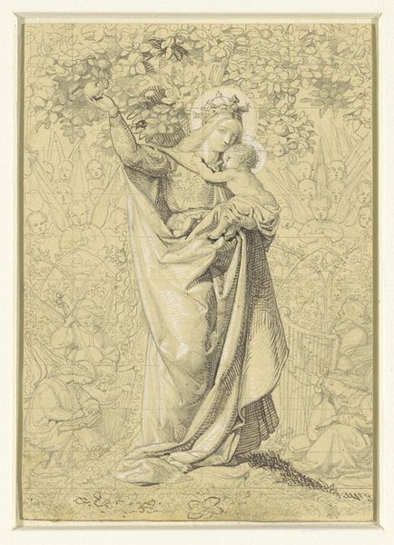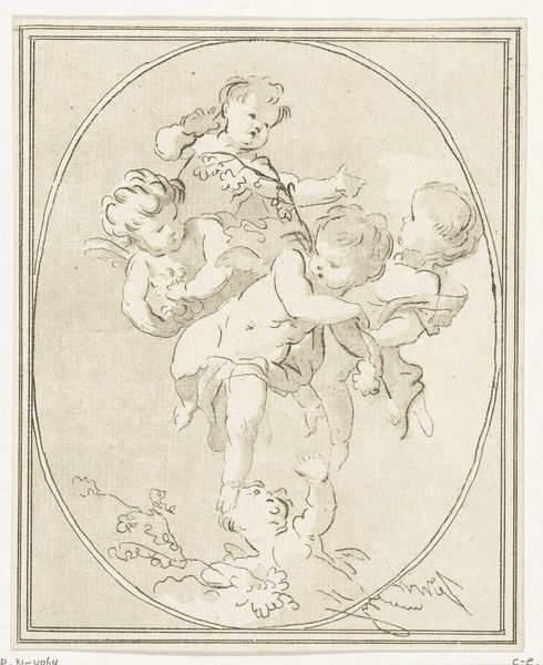 Edme Bouchardon created this chalk drawing, "The Sense of Smell," during the height of the French Rococo. At the time, the hierarchy of the senses placed sight above smell, yet here Bouchardon elevates the olfactory to a position of classical virtue. A semi-nude, androgynous figure carries a vase of flowers, their heady scent seemingly the source of their strength. Below them, a dog sniffs the ground, its keen nose grounding the image in the earthly realm. The choice to depict smell through both human and animal reinforces its primal, universal nature. Bouchardon, steeped in classical tradition, subtly challenges the established order. The drawing captures the fleeting, invisible quality of scent, transforming it into a tangible, almost heroic form. This piece invites us to consider how our senses shape our understanding of the world and challenges us to appreciate the often-overlooked power of smell. It's a reminder of how deeply our senses are intertwined with our emotions and memories.