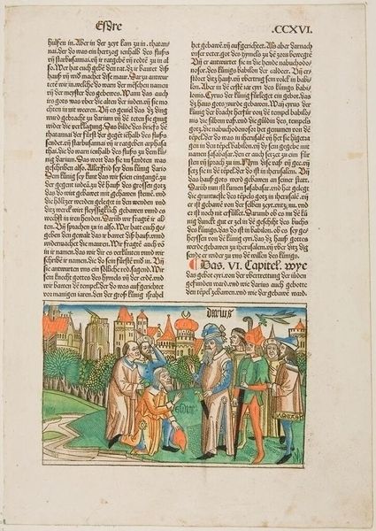 Editor: Here we have “Conviction and Punishment of Supporters of Amaury de Chartres” painted around 1460 by Jean Fouquet. It's a tempera on vellum miniature from the National Library of France. It depicts a very somber scene with figures being burned at the stake. What can you tell me about this artwork? Curator: This miniature serves as a powerful document reflecting the socio-political dynamics and anxieties of the late Middle Ages. Consider the role of the Church at that time. What means did it employ to maintain ideological control? Editor: I guess burning people would be a pretty extreme one. I hadn't really thought about how public these events were. The figures seem so deliberately posed and arranged in the miniature, making the message feel intentional. Curator: Precisely. Fouquet, though working under royal patronage, subtly critiques institutional power through the detached and almost theatrical representation of the event. The architecture in the background is very prominent too, suggesting that the urban setting itself played a key role. What might the architecture signify within the narrative of religious prosecution? Editor: Maybe that this happened with civic approval, that the city sanctioned this violence? It really brings the social impact into focus. I’d only really been considering the religious aspects. Curator: Exactly! This isn't simply religious fervor, but a performance enacted with civic complicity. Reflecting on this piece, it reminds us how crucial it is to investigate both overt narratives and underlying socio-political motivations present in artwork. Editor: Yeah, I never thought about it that way. It really brings a different perspective. Curator: It highlights the public role of art in both documenting and subtly contesting prevailing ideologies, encouraging a dialogue on power and its representation.