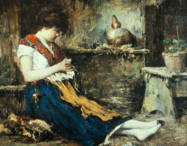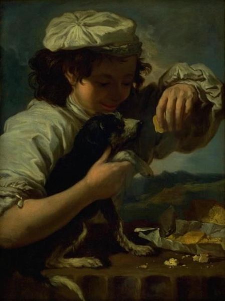 Polychronis Lembesis created "Child with Rabbits" during a period of significant social change in Greece. The late 19th century saw the rise of nation-building projects alongside challenging social and economic conditions for many. The image captures a young boy, perhaps on the cusp of adolescence, caught in a moment of quiet interaction with two rabbits. Lembesis invites us to consider the boy's relationship with the animals, who are often seen as symbols of innocence and vulnerability. Yet there's an unsettling contrast here; the boy, who seems to be in a state of poverty, offers the rabbits food which may suggest an underlying story of survival and the complex relationships between humans and animals. The bare feet of the boy and the rustic setting hint at a life removed from urban comforts, reflecting the rural realities of the time. Lembesis doesn't shy away from depicting the textures of everyday life, reminding us of the intimate, often unseen moments that shape our existence. "Child with Rabbits" captures a moment of quiet beauty but also prompts a dialogue about the social realities of the artist's time.