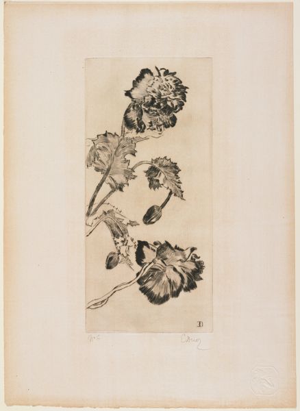 Editor: So here we have Richard Nicolaüs Roland Holst's "Sunflower from the Front," likely made sometime between 1878 and 1938. It's an ink and pencil drawing on paper. What strikes me is the slightly melancholic feel – it's a sunflower, but somehow it's not bursting with joy. What do you make of it? Curator: Well, you know, sunflowers, for all their sunny reputation, are also symbols of endurance and even a quiet stoicism. This drawing, particularly, feels like a close, almost tender observation of that resilience. Holst isn't giving us the idealized bloom; he’s showing us something…a little weathered. Doesn’t it remind you a bit of life itself, the way we carry on, facing the sun, even when our petals are a little droopy? Editor: I like that idea. It definitely shifts how I see it. I was focused on what seemed almost like a drooping quality, but thinking about endurance makes a difference. Curator: Exactly! The artist here invites you in as a silent witness. A silent witness, what a delicious thing! Have you ever noticed how ink, in particular, allows for such subtle emotional shading? It almost feels like we are looking at a faded photograph instead of fresh summer flower. Editor: That's very true, and it gives the piece a real sense of intimacy, like a secret shared. Curator: Indeed! And perhaps the secret is simply that even beauty fades, but strength remains. Or maybe it's about the exquisite beauty *in* fading. I'm so fond of the concept of that kind of transient perfection. Editor: I hadn't considered the beauty in that imperfection. That really changes my perspective on the piece, thank you. Curator: My pleasure! It’s those kinds of subtle details that invite contemplation, don’t you think? That lingering, personal dialogue is everything, after all.