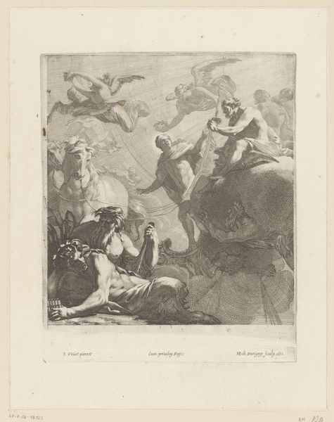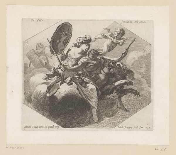 Adolph Kittendorff made this engraving of a shot reindeer, sometime in the 19th century. Dominating the foreground is the wounded reindeer, a powerful symbol of wilderness and untamed nature. Note how it struggles, its antlers—a sign of virility—caught in the hunter's rope. The motif of the hunt, deeply rooted in human history, appears in ancient cave paintings and classical mythology, often symbolizing the conflict between man and nature. Consider the Greek myth of Actaeon, transformed into a stag and hunted by his own hounds, a potent image of transformation and primal instinct. Here, the hunter, though present, is almost secondary to the animal's raw struggle. This evokes a deep, subconscious recognition of mortality and the delicate balance between predator and prey. This is a cycle of life and death that continues to echo through our collective memory.