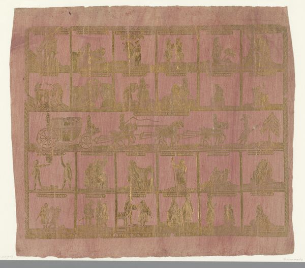 Johann Georg Eckart created this print, "Sheet with professions in eight rows," using etching techniques to depict a panorama of 18th-century trades. The arrangement of figures, each engaged in their craft, evokes a sense of communal life, yet a closer look reveals the symbolic weight of each occupation. Consider the image of the executioner, standing in stark contrast to the artisan. This is a potent reminder of mortality and justice, themes that echo through epochs, from medieval morality plays to Renaissance allegories. The presence of craftsmen shaping their materials connects deeply with ancient myths of creation, reminding us of the primal act of bringing order from chaos. These motifs resonate subconsciously, tapping into shared human experiences and fears. Notice how the scenes create a visual tapestry of human endeavor. This is a reminder that symbols carry deep-seated emotions, engaging viewers with a powerful, often subconscious force that transcends time.