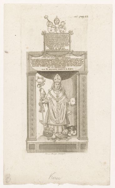 Michel Vermeiren created this print of Heilige Martinus van Porres, or Saint Martin de Porres, sometime in the 19th century. It's a classic example of religious iconography, yet we can still ask what the image contributes to the perception of the man. Martin de Porres lived in Peru at a time when the social hierarchy was deeply influenced by race. He was of mixed Spanish and African descent, and despite facing discrimination, he joined the Dominican Order. His dedication to the poor and sick, regardless of their background, eventually led to his canonization as a saint. The image of Martin, with his halo, crucifix, and alms purse, reinforces the Catholic Church's institutional role in shaping the narrative of sainthood, but it also subtly challenges racial prejudices. The image has the function of promoting specific ideas and values, such as charity and piety. By looking into archives of the Dominican Order, the artist's background, and the social history of 19th-century Peru, we can better understand how this image functions in its cultural context. The meaning of the artwork lies not only in its aesthetic qualities but also in the complex interplay of social and institutional forces.