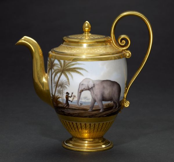 This creamware teapot in the shape of a camel was made by the Staffordshire Potteries, in England, most likely during the late 18th or early 19th century. The camel form, complete with saddle and driver, speaks to a culture increasingly aware of global trade and colonial exploits. The Staffordshire potteries were deeply embedded in a network of transatlantic commerce. Raw materials such as clay and tin came from Cornwall, while the finished products were shipped to ports as far afield as the Americas and India. The labor practices within these potteries, however, were far from equitable, with long hours and dangerous conditions being the norm for many workers. Examining documents from the period such as trade ledgers, inventories, and pattern books, alongside archaeological evidence from factory sites helps us understand the complex social and economic dynamics at play in the creation and consumption of these objects. The study of an object like this teapot brings into focus not only the artistry of the potter but also the wider social conditions that made its creation possible.